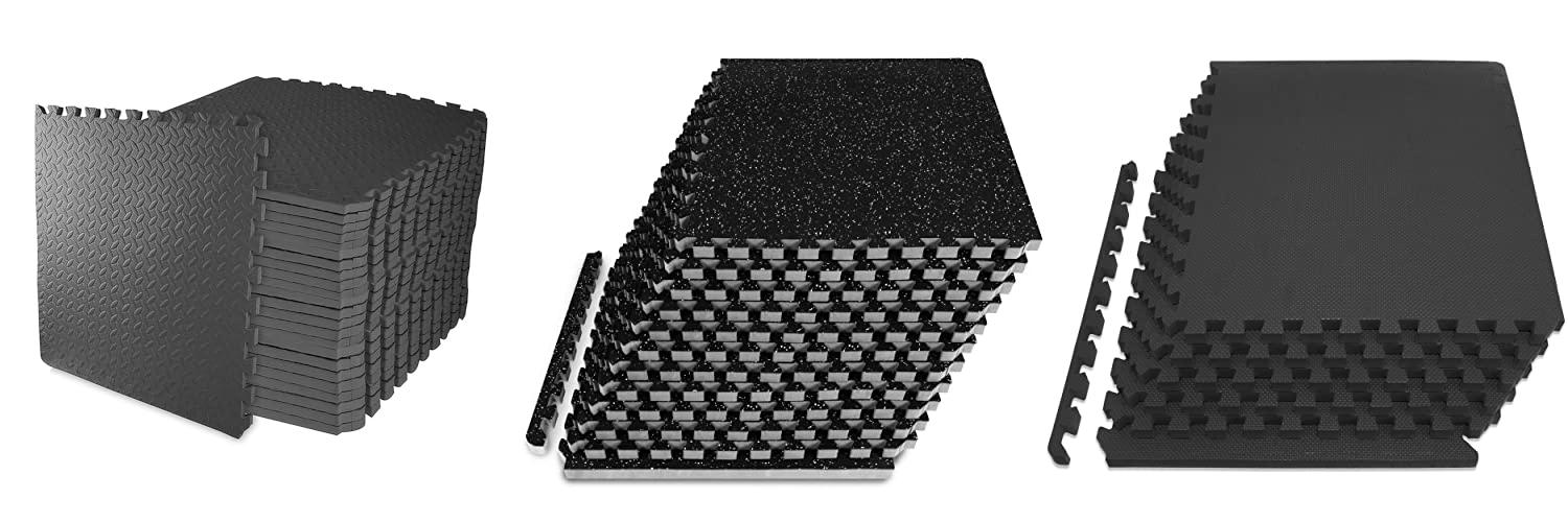 ProsourceFit Rubber Top Exercise Puzzle Mat 3/4-inch, 48 SQFT, 12 Tiles, EVA Foam Interlocking Tiles for Home Gym Protective Flooring for Equipment and Workouts, Grey