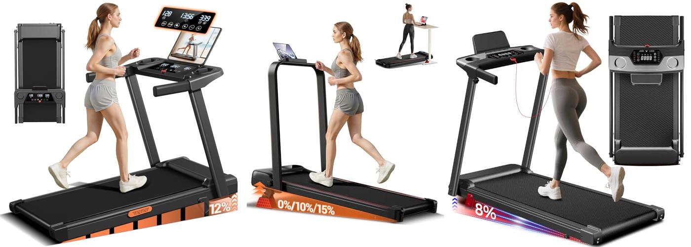 - It’s a versatile 4-in-1 machine: use it as a walking pad, a folding treadmill, a desk treadmill, or a hill climber.