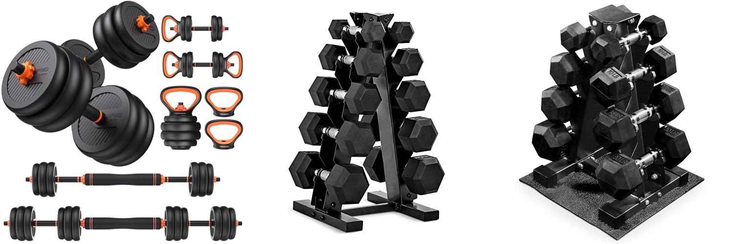 - Home Workouts: Dumbbells are great for many exercises: squats, lunges, bicep curls, shoulder presses, and more. They let you work out almost any part of your body.