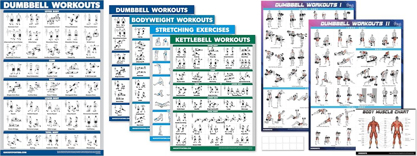 3. Dumbbell Workout Poster Set (2 Pack) – Workout Charts for Home Gym
