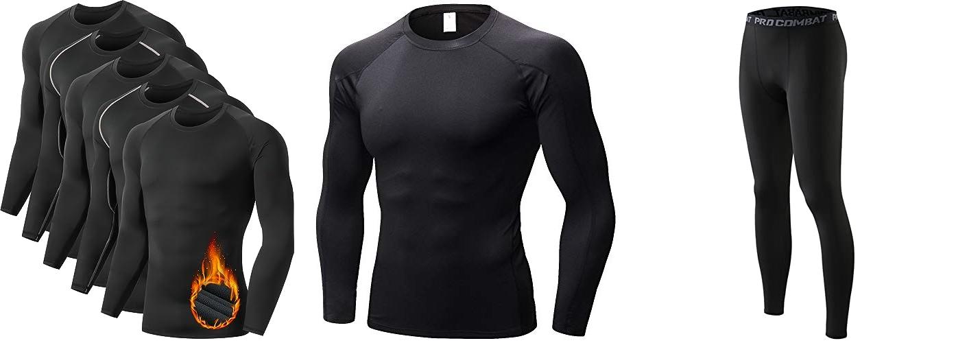 1. TELALEO 5 Pack Men’s Thermal Compression Shirt Long Sleeve Athletic Base Layer Top Winter Cold Gear Workout Running Hunting L