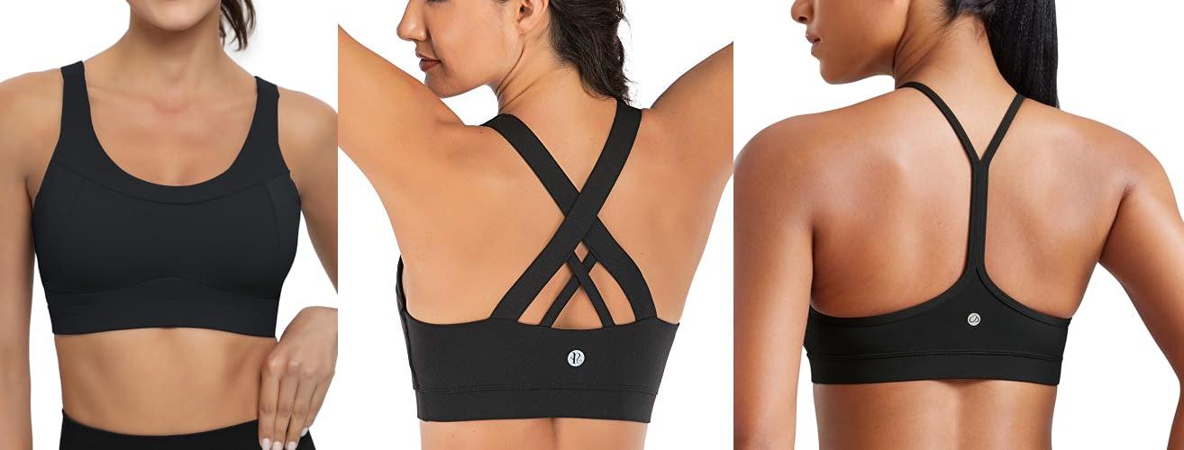Racerback styles, where the straps meet in the back in a Y or X shape, offer good support and freedom of movement for your arms. Wide straps help spread out the pressure on your shoulders, which can be more comfortable.