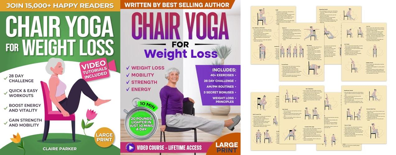 1. Chair Yoga for Weight Loss: A Collection of 50+ Low-Impact Exercises for Seniors and Beginners to Lose Weight While Sitting on a Chair. Includes Personal Trainer Video Tutorials and 28-Day Challenge
