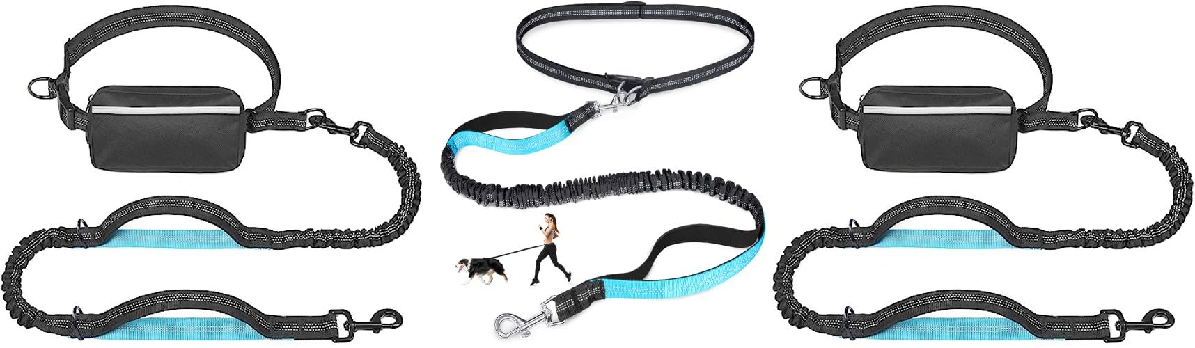 Laqibak Hands Free Dog Leash, Adjustable Waist Leash for Dog, Handle Bungee 4.2-6.7 Feet Long with Reflective Stitches for Walking Hiking Running, Fits 26"- 43" Waist, Black & Blue