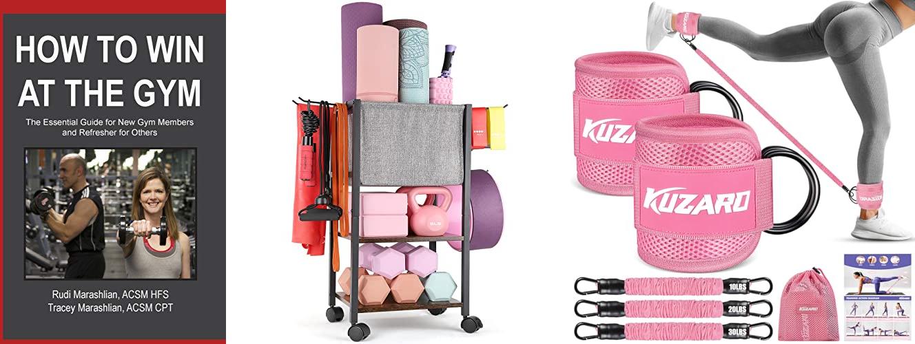 - It stores a wide variety of exercise equipment, including yoga mats, dumbbells, kettlebells, resistance bands, and more.