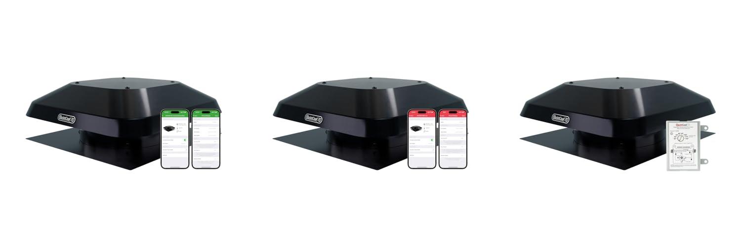 1. Quietcool AFR SMT ES-2.0 Roof Mount Smart Attic Fan – Up to 1950 CFM – As low as 25 Watts – Smart App Control – Thermostat and Humidistat – 20ft Power Cord – Plug-and-play – Three Speed