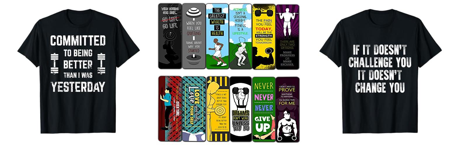 - Print: Think posters, t-shirts, water bottles, or even workout journals. You can see them every day.