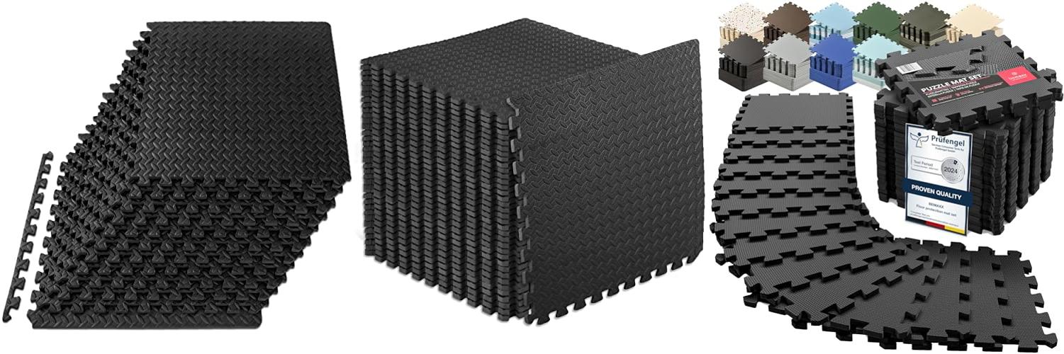 bemaxx Gym Mats Set - 18 pcs EVA Interlocking Foam Floor Tiles (12.6"x12.6"x0.4") 18sqft Protective Gym Flooring Sports Home Workout Exercise Mats Puzzle Garage Fitness Play-Room Garage Pool Treadmill