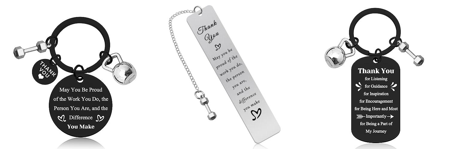 - This keychain makes a great gift for personal trainers, friends, or family members who are fitness instructors. It also works well for coworkers, colleagues, and employees to show appreciation.