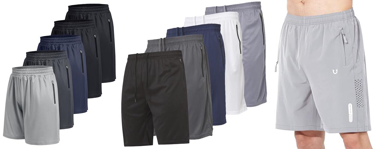 1. BOOJO 5 Pack Athletic Basketball Mens Shorts with Zipper Pockets – Lightweight Quick Dry Gym Workout Running Shorts for Men