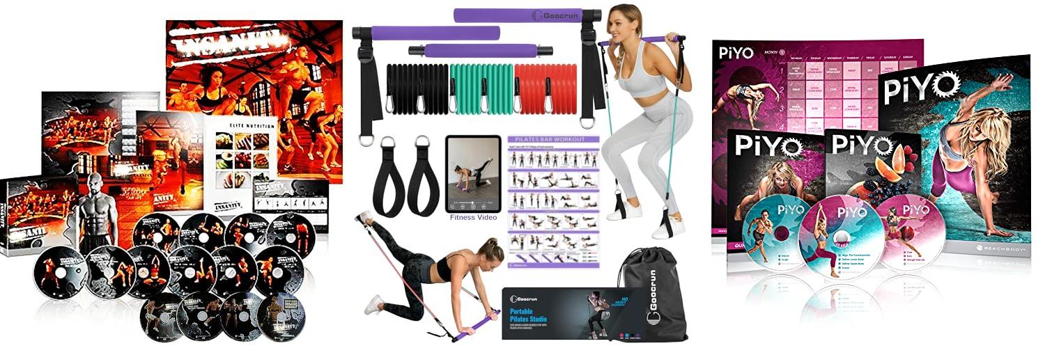 - Offers a total body workout set with 10 DVDs, plus extra strengthening DVDs and a fast-paced 20-minute workout.