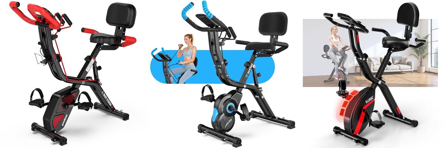 The SLUNSE 5-IN-1 Folding Exercise Bike is a versatile workout machine that brings a mini-gym experience right into your home. You can switch between upright, relaxed, or recumbent positions to work your whole body. It even includes resistance bands and leg pull ropes to help you burn calories, build strength, and improve your heart health. This bike is designed for comfort and ease of use, making it a great option for fitness enthusiasts of all levels.