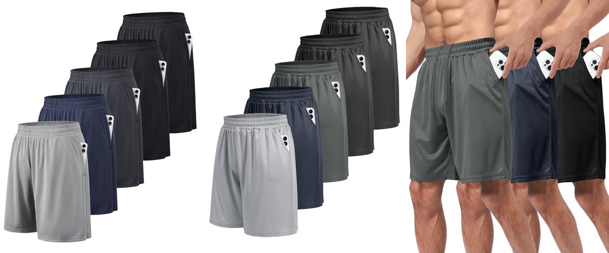 5. AKAWOOKO 5 Pack Men’s Athletic Gym Shorts with Pockets Quick Dry Activewear Workout Running Shorts for Men
