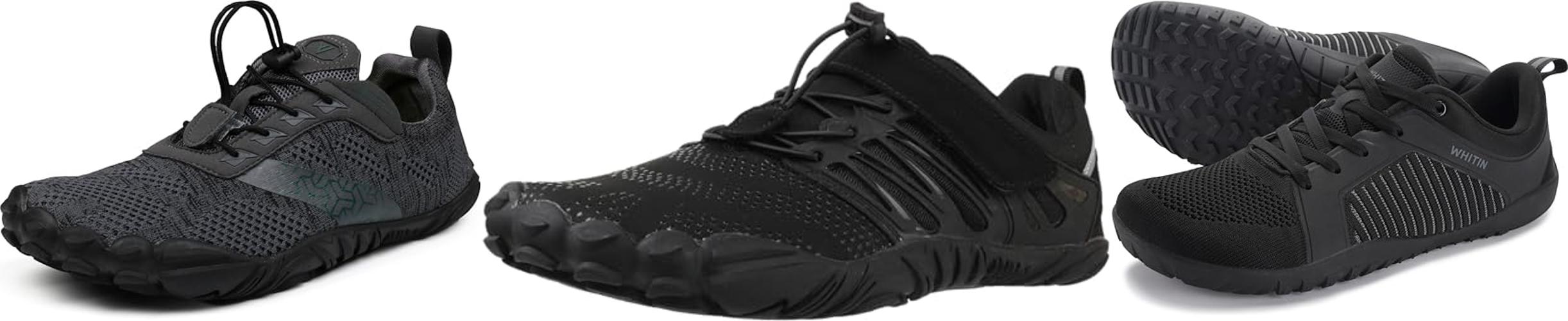 2. WHITIN Men’s Trail Running Shoes Minimalist Barefoot Size 10 Wide Width Toe Box Gym Workout Fitness Low Zero Drop Light Weight FiveFingers Black 43