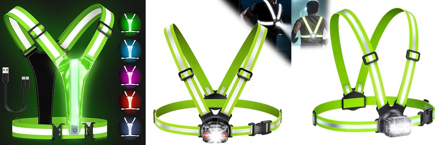 A: Yes, there are vests with just reflective strips, vests with LED lights, and vests that combine both. Some are full vests, while others are more like harnesses.