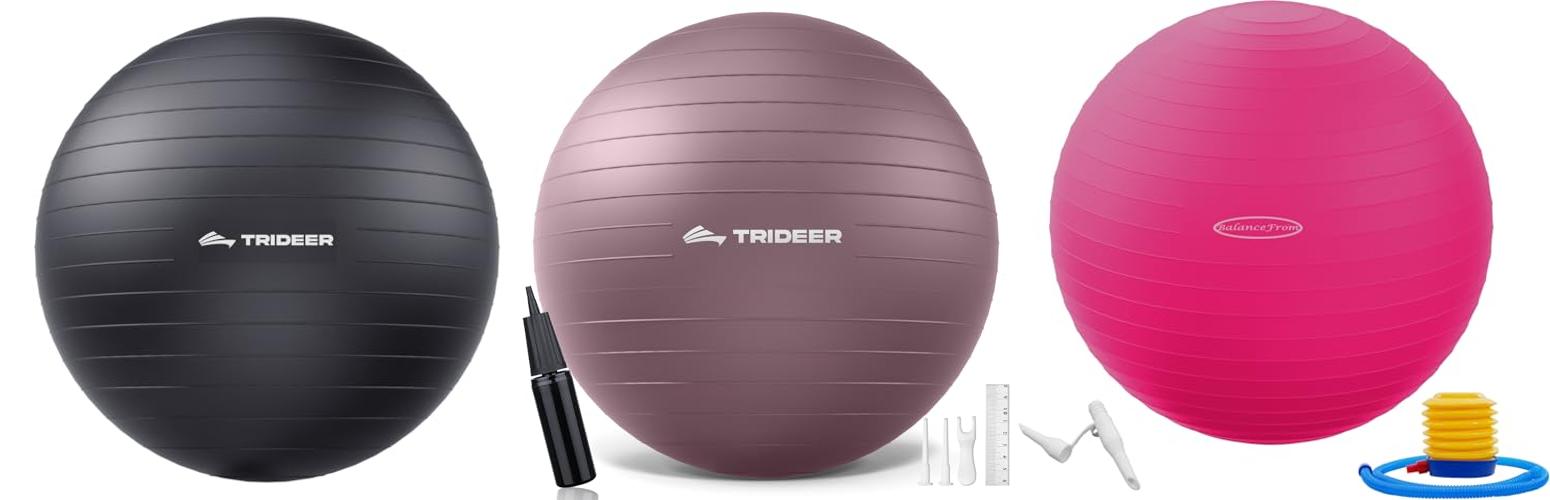 Trideer Exercise Ball for Yoga, Pilates & Fitness – Stability Ball Equipment for Home Gym & Office Chair, Core & Balance Training Accessories, Physical Therapy Equipment, Quick Pump Included, 5 Sizes