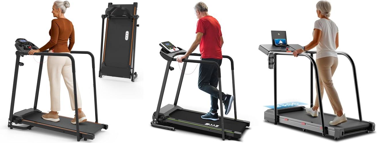 1. Redliro Walking Treadmill with Long Handrails – Treadmill for Seniors 300 lbs Capacity – Foldable