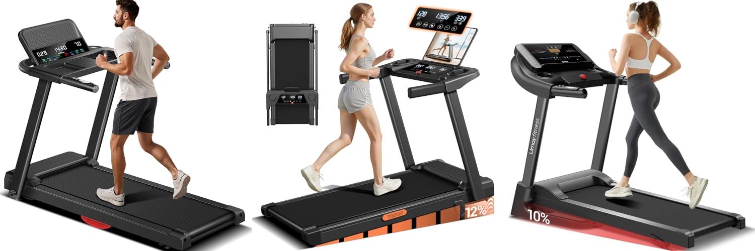 The UMAY Fitness Home Folding Incline Treadmill is designed for effective home workouts. It offers a quiet and powerful experience for users up to 300 lbs. This treadmill helps you burn calories and build strength without disturbing your household.