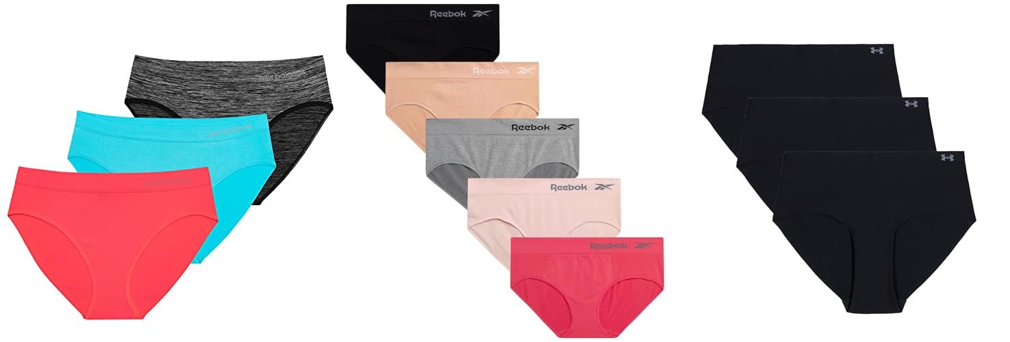 4. Reebok Women’s Hipster Panties – 3 Pack Tag Free Stretch Performance Stay-Put Seamless Underwear for Women (Sizes: S-XL)