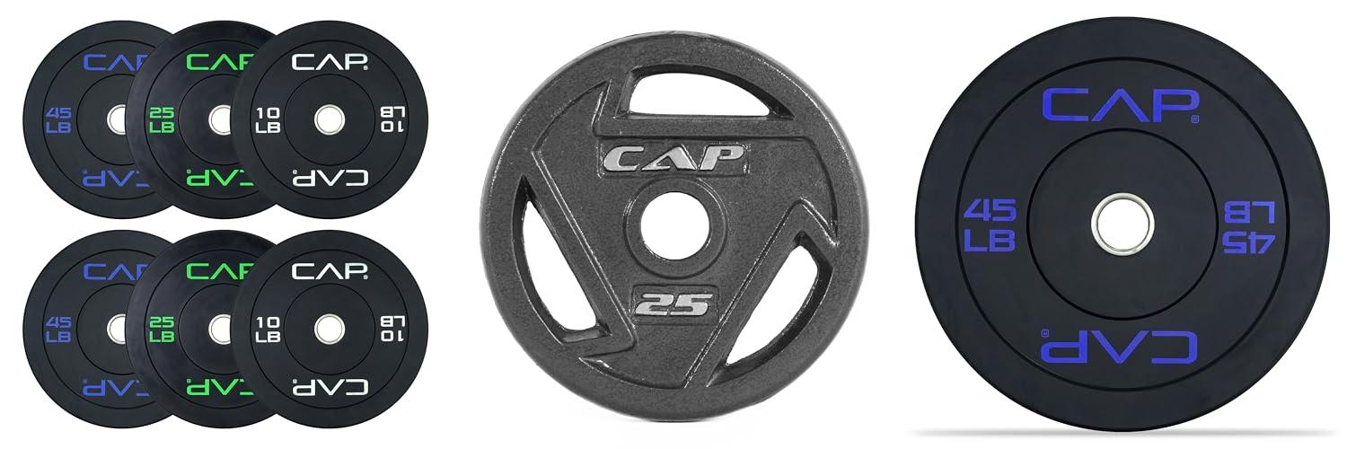 1. CAP Barbell Economy Olympic Bumper Plate Set with Color Logo