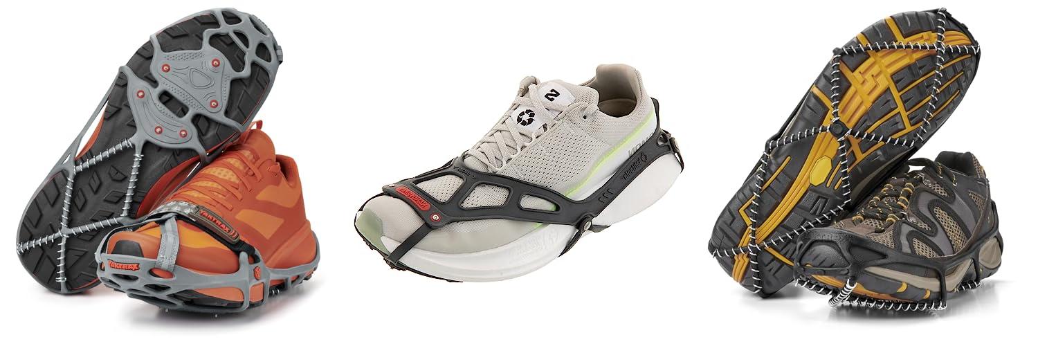 - GRIPS ON SLIPPERY SURFACES: They help you walk safely by giving you steady footing on ice and snow. They even help on rocky ground.