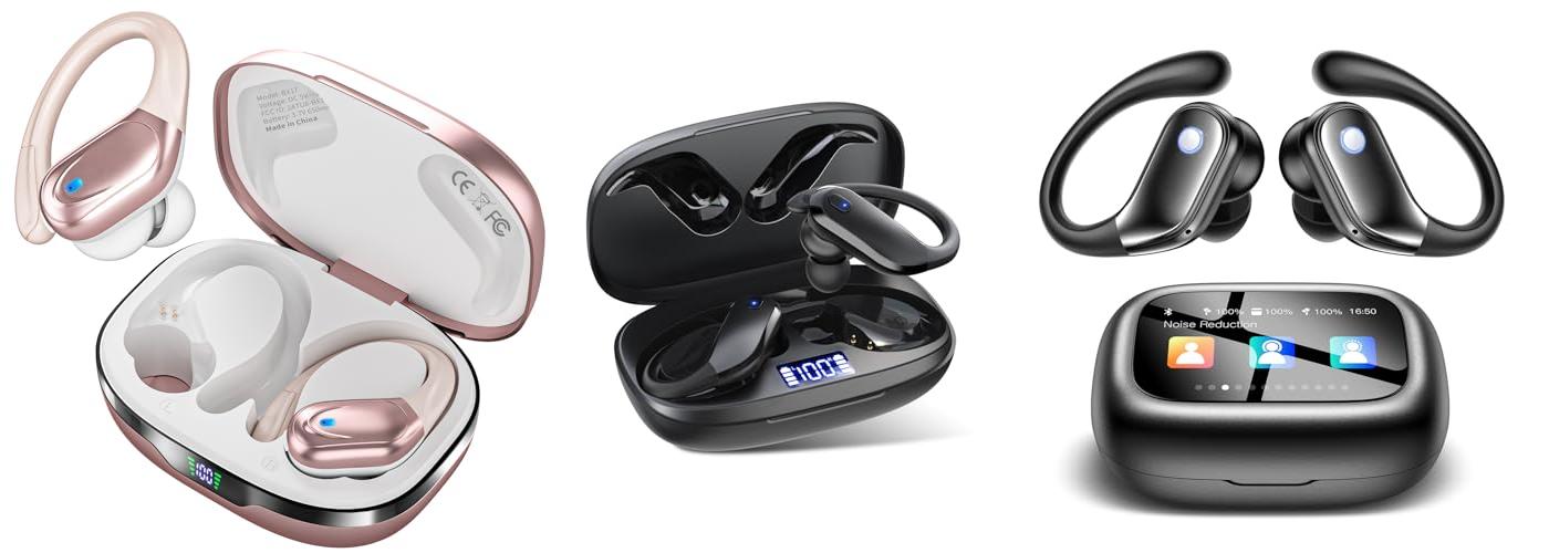 • Sports Comfort & IPX7 Waterproof: These earbuds stay put thanks to soft ear hooks and come with different ear tip sizes for a perfect fit. They can handle sweat and splashes, so they’re great for any sport.
